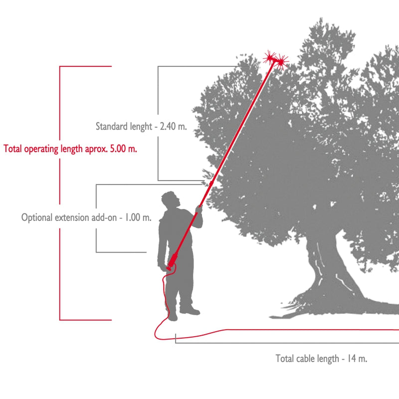 - Total machine length – 2.4m. ( 3.4 or 4.4m optional for CF). tree up to 7m.